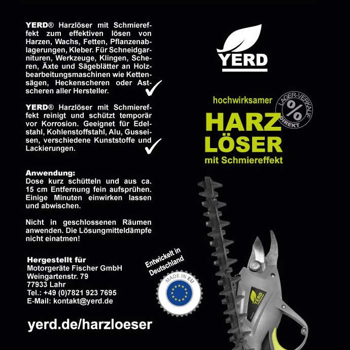 YERD® Harzlöser mit Schmiereffekt reinigt und schützt temporär vor Korrosion. Geeignet für: